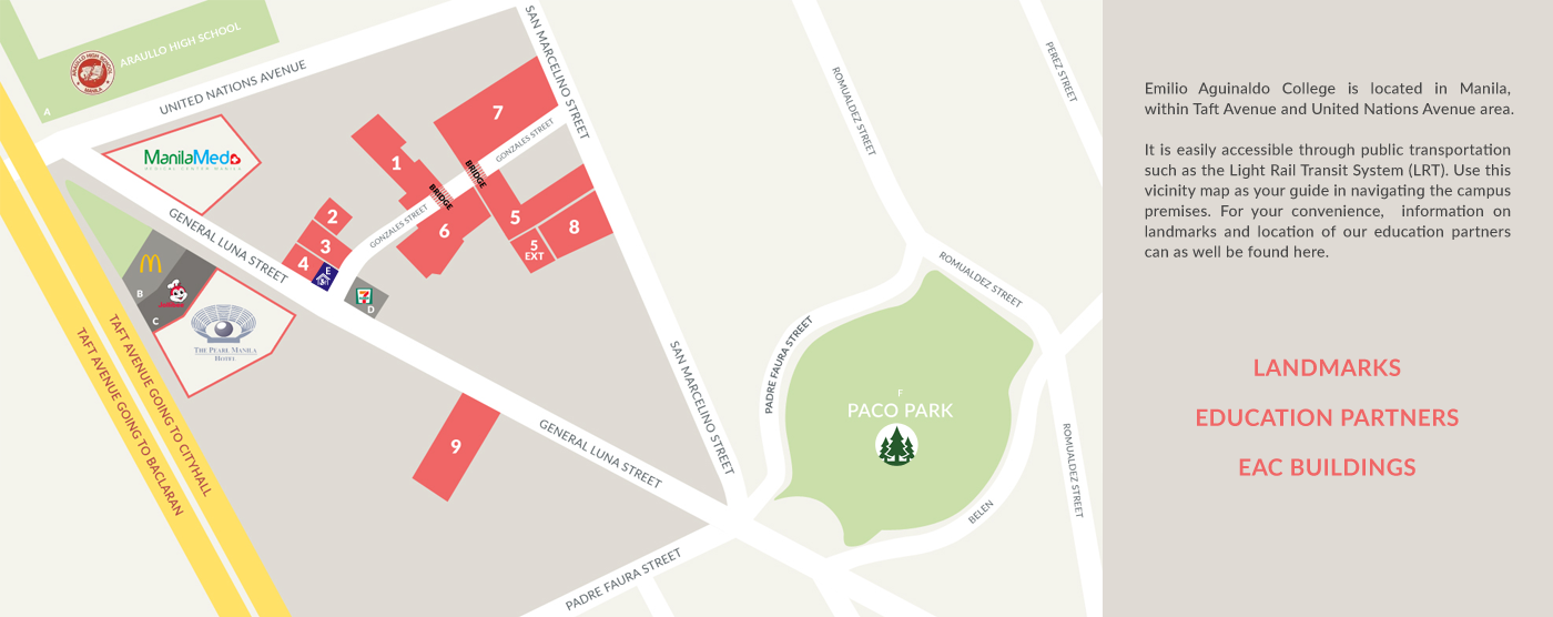 Located at the heart of Manila, Emilio Aguinaldo College (EAC) is a private, non-sectarian, coeducational academic institution that offers rigorous professional degree programs open to local and foreign students.